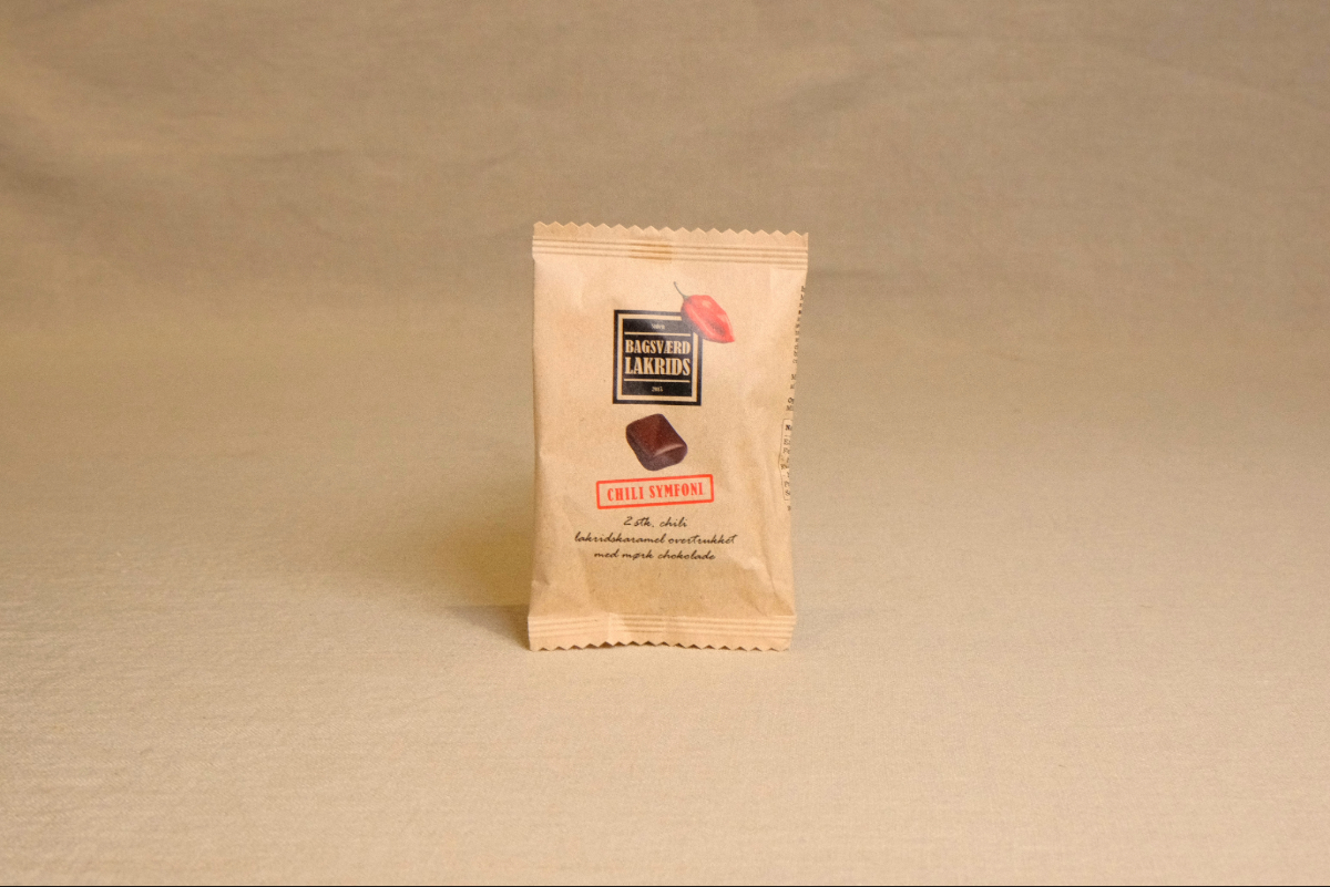 - Søt lakriskaramell + chili gir en varm og unik smak.