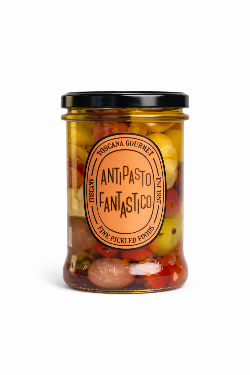 Carciofi alla Toscana er ekte italienske artisjokkhjerter, marinert i ekstra jomfru olivenolje, hvitløk og toskanske urter. Fyldig, aromatisk og full av umami – en klassisk delikatesse fra det italienske kjøkken, klar til å nytes rett fra glasset.