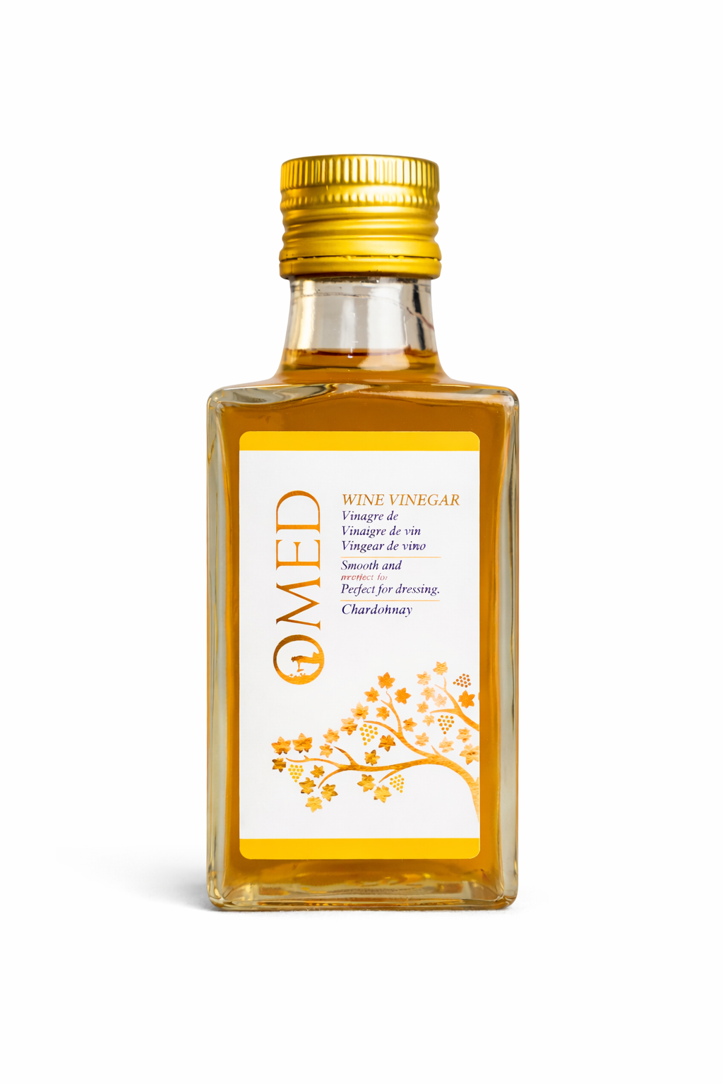 O-Med Chardonnay hvitvinseddik er laget av 100 % Chardonnay-druer fra Lérida i Spania. Den lagres i 12 måneder på franske eikefat og produseres med den tradisjonelle Schützenbach-metoden, som bevarer druens naturlige aroma og gir en rund, elegant syrlighet.