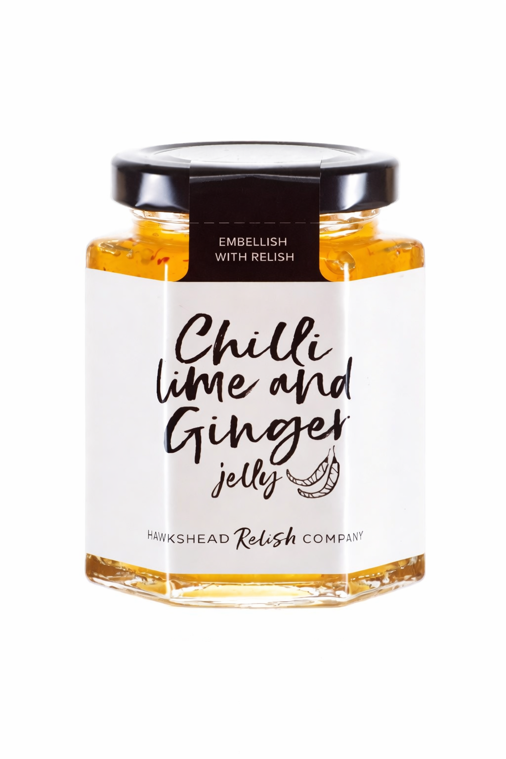 Chilli, Lime & Ginger Jelly 205g er en prisvinnende gelé fra England som kombinerer sødme, frisk lime, varm ingefær og et mildt sting av chili. En eksotisk, balansert delikatesse – perfekt til kylling, fisk, ost og tapas.