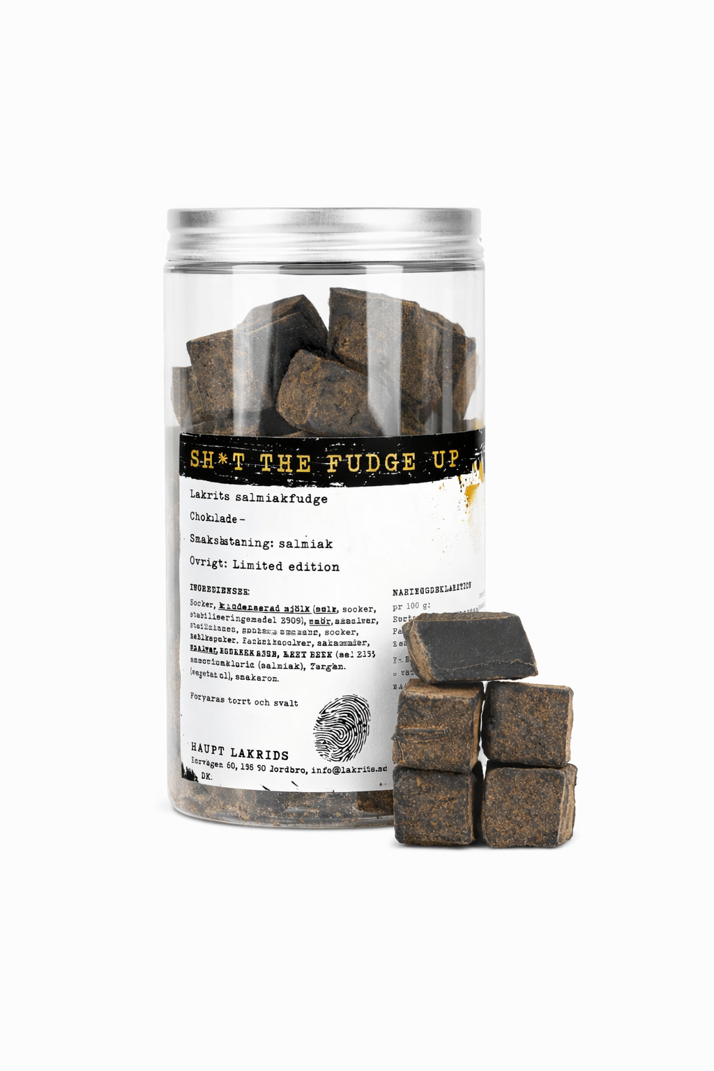 Endelig tilbake på lager! En håndlaget smørfudge med ekte rålakris og et lett dryss av salt lakrispulver – laget av Haupt Lakrits i Sverige.