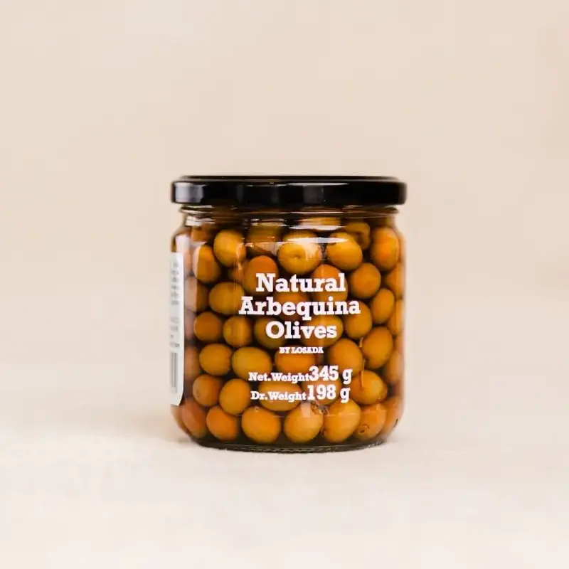 Små, håndplukkede Arbequina-oliven fra Spania – kjent for sin delikate, fruktige aroma med lette nøtte- og epletoner.