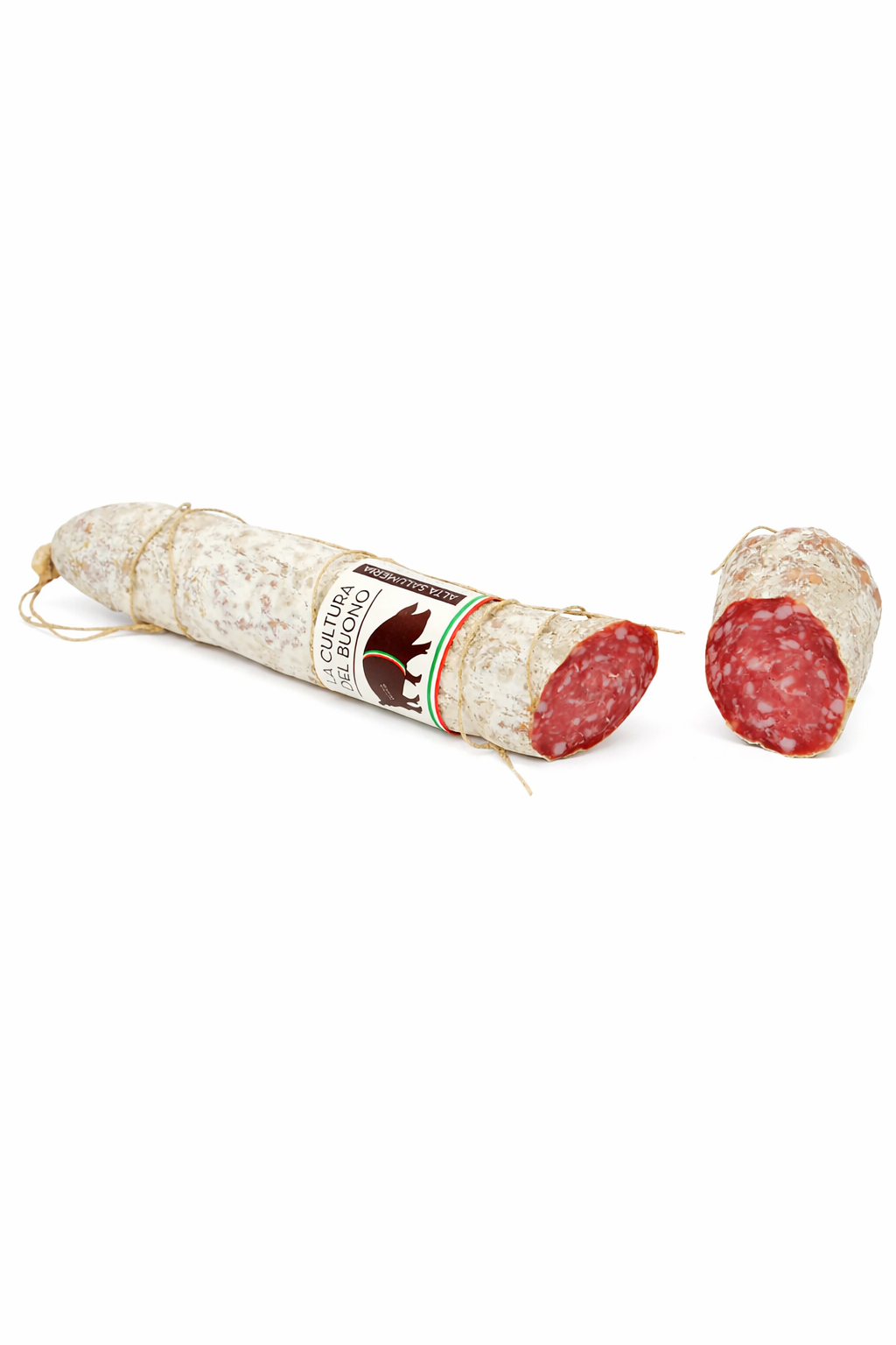 Salame Felino Gentile 200 g fra Edizioni Franchi er en klassisk italiensk finmalt salami med mild, elegant og balansert smak. Felino regnes som en av Italias mest raffinerte salami-typer – kjent for sin delikate krydring, silkemyke tekstur og rene kjøttsmak.