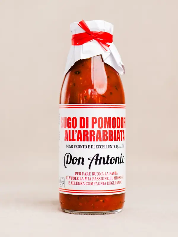 Don Antonio bruker bare lokal dyrkede ingredienser fra Abruzzo-regionen. Resultatet er en naturlig, sterkt smakende arrabbiata med ektenskap til italiensk matkultur.