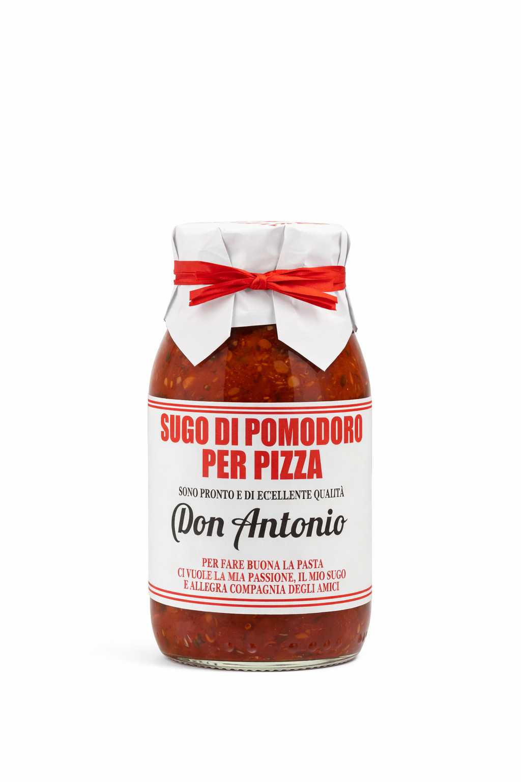 Sugo per Pizza fra Don Antonio er en klassisk italiensk pizzasaus med ren, konsentrert tomatsmak og mild krydring – laget for høy varme i ovn. Den har riktig konsistens for pizza: fyldig nok til å gi smak, men uten å gjøre bunnen vannete.